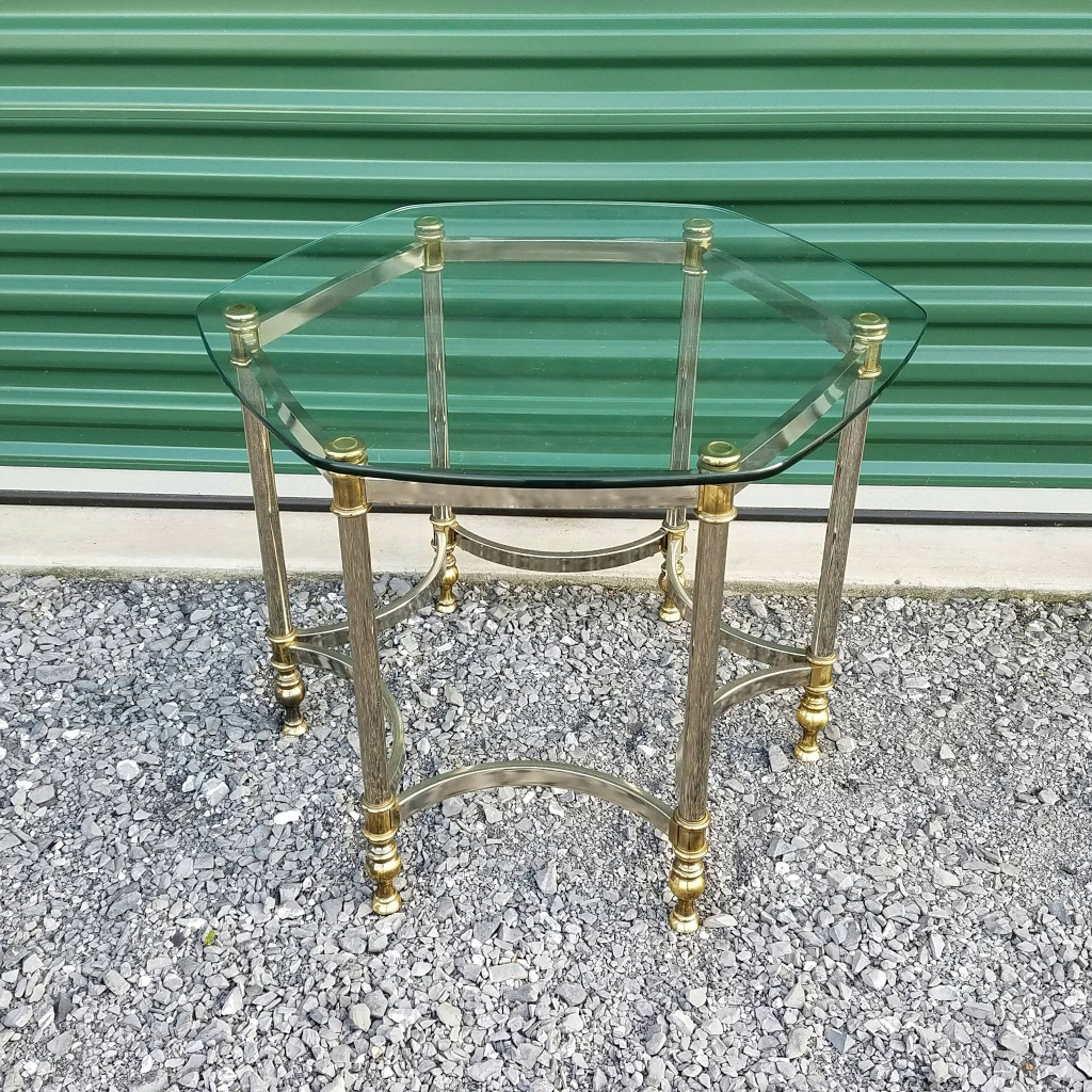 Vintage and specialty rentals ready for your event Photo by Sarah Featherstone Photography Collection Coffee And Side Tables Brass And Glass 6-Leg Table Search