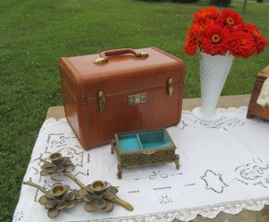 Description: Samsonite train case in the classic saddle tan color. Lots of uses for vintage suitcases. Use them to collect cards or fill with flowers. Perfect for anyone who loves travel.