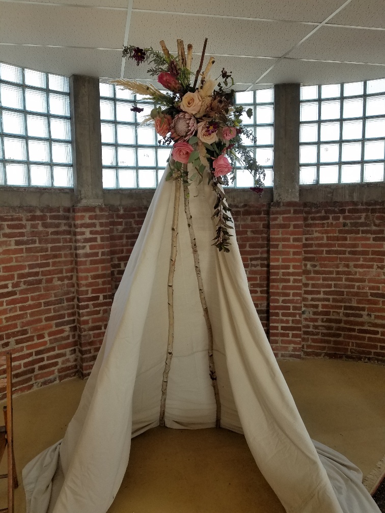 Vintage and specialty rentals ready for your event Photo by Sarah Featherstone Photography Collection Arches, Backdrops, And Large Decor White Birch Teepee Search